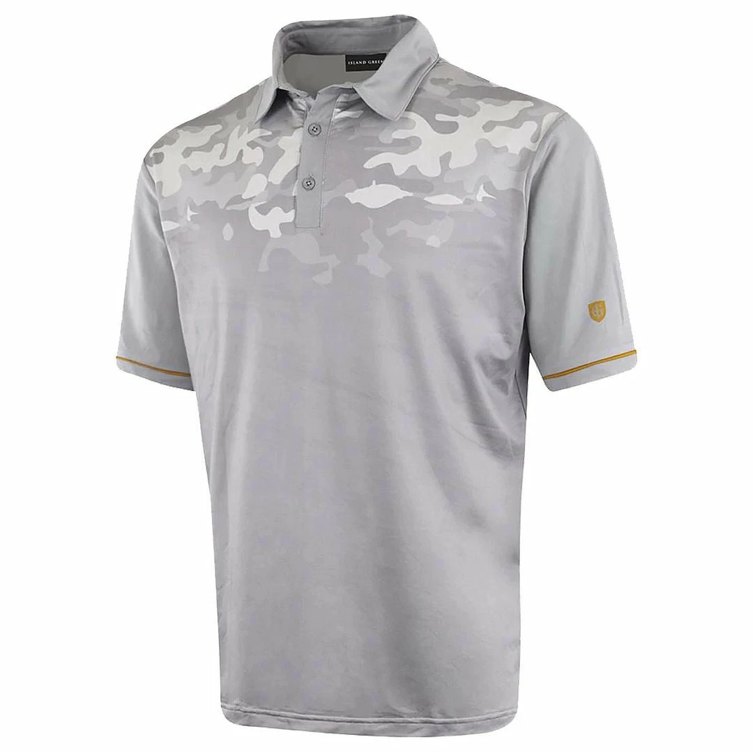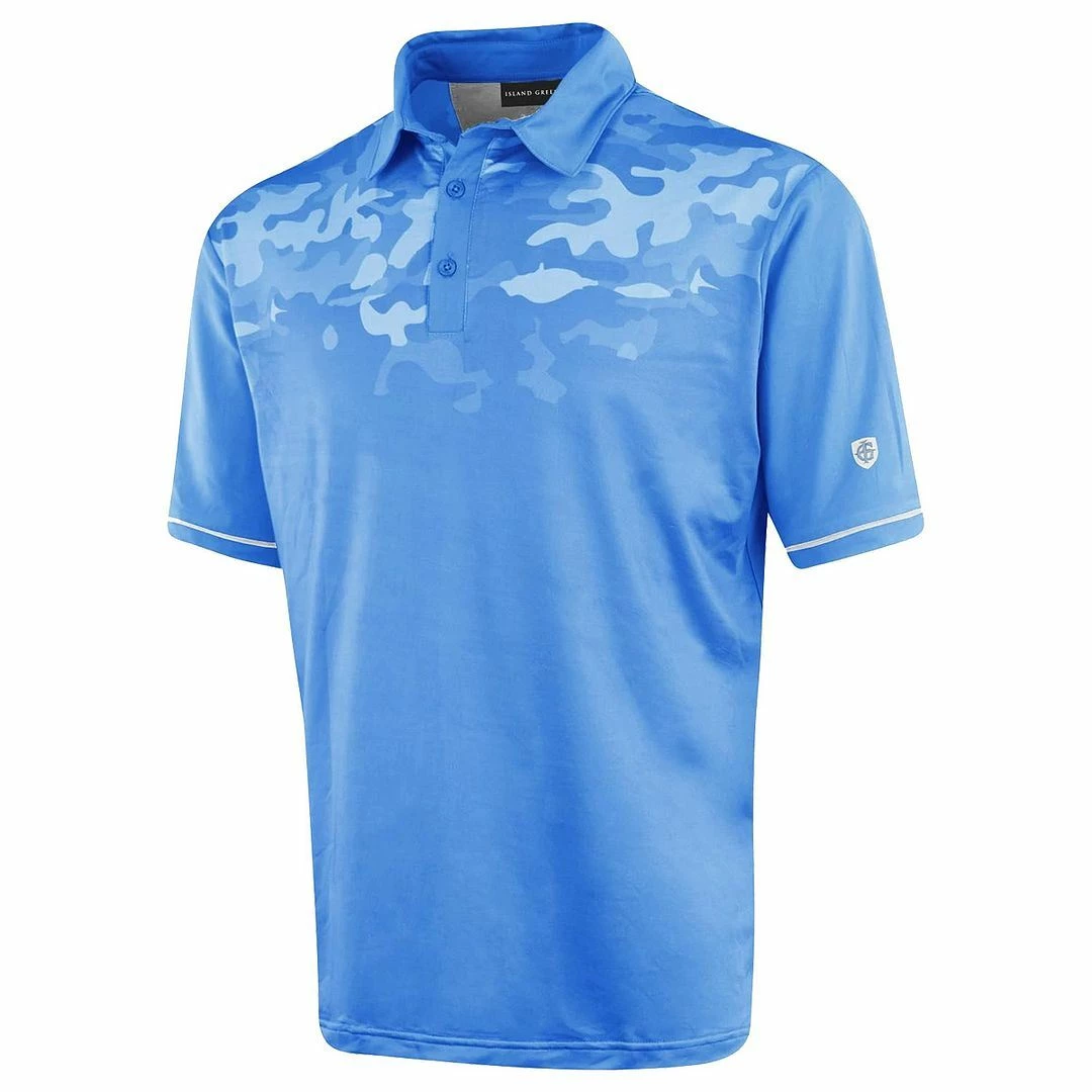 Island Green the international golfing brand have introduced the IGTS2148 Men’s Graded Camo Print Polo Shirt into their Spring Summer Range! With moisture wicking properties, and breathable element embedded within this polo shirt is perfect for those summer days on the course. Island Green have fused the garment with 4 way stretch properties allowing flexibility in movement and comfort when wearing. This top proudly supports the Island Green logo to the left arm and back, and is designed with an graded camo sublimation print this is a great fashion piece to your golfing wardrobe
